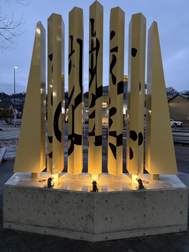 角度によって将棋の駒の「歩」「と金」に見える写真は、名古屋鉄道瀬戸線の尾張瀬戸駅からほど近い場所に、市が2025年10月1日に建てたモニュメント(高さ2.4メートル・ステンレス製)でした。当時、藤井聡太七冠がモニュメント完成に寄せた「大志」の2文字が記された瀬戸焼の陶板も横に設置されており、やきものに加えて将棋文化の振興を図ろうと建立したのです。