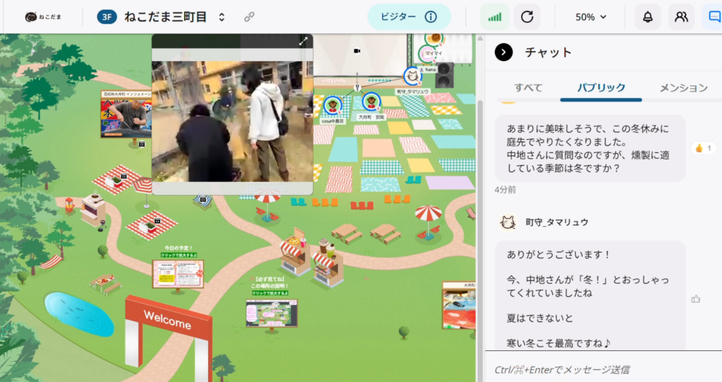 オンライン会場内には、ほかにも大月町の紹介映像やクイズなどのコンテンツも置いていたため、3時間の長丁場でありながら、まちイベント空間を回遊して過ごし、大月町の魅力を多面的に感じていただくことができました。